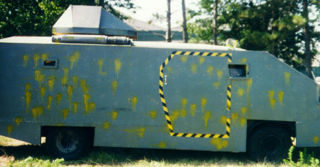 Lisa, Austin, and their armored car |