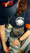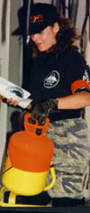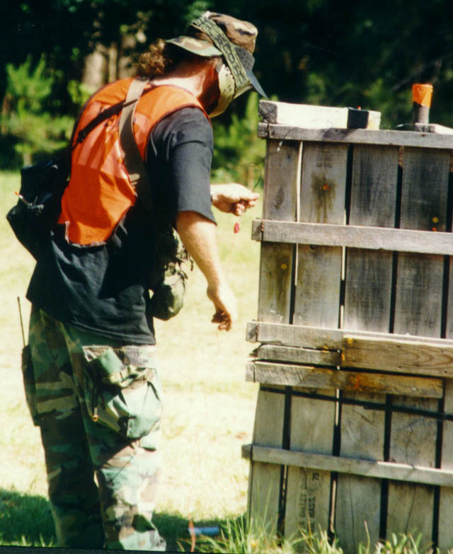 The field pyrotechnitian sets a flashpot charge. |