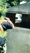 A player from Nemesis takes cover behind an anti-aircraft missle. |
