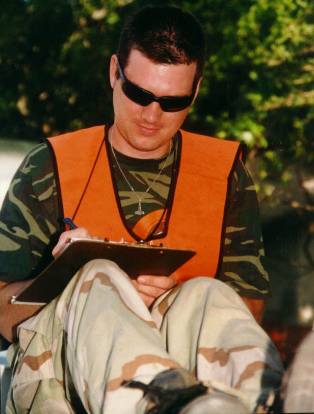 Kevin "Kocker" Kolinski hard at work writing for Paintball News |