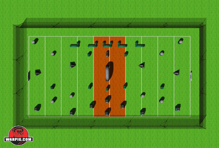 WARPIG.com Field Preview Illustrations are based on Millennium's published field maps, and Sup'Air's published bunker dimensions as well as direct bunker measurement. On-site variance may occur due to set up error, unplanned field changes or variance in scale. Bunker colors and graphics are for illustrative purposes only.