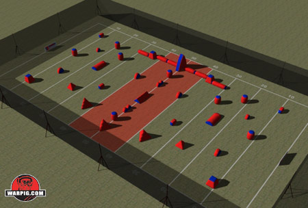 WARPIG.com Field Preview Illustrations are based on NPPL's published field maps, and Sup'Air's published bunker dimensions. On-site variance may occur due to set up error, unplanned field changes or variance in scale. |