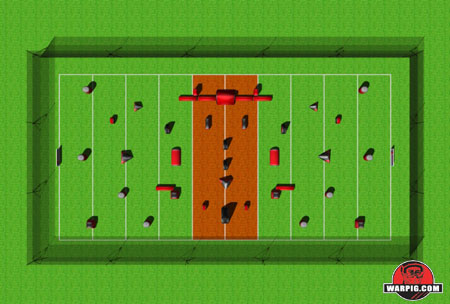 WARPIG.com Field Preview Illustrations are based on NPPL's published field maps, and Sup'Air's published bunker dimensions. On-site variance may occur due to set up error, unplanned field changes or variance in scale. Bunker colors and graphics are for illustrative purposes only.