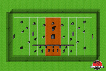 WARPIG.com Field Preview Illustrations are based on NPPL's published field maps, and Sup'Air's published bunker dimensions. On-site variance may occur due to set up error, unplanned field changes or variance in scale. Bunker colors and graphics are for illustrative purposes only.