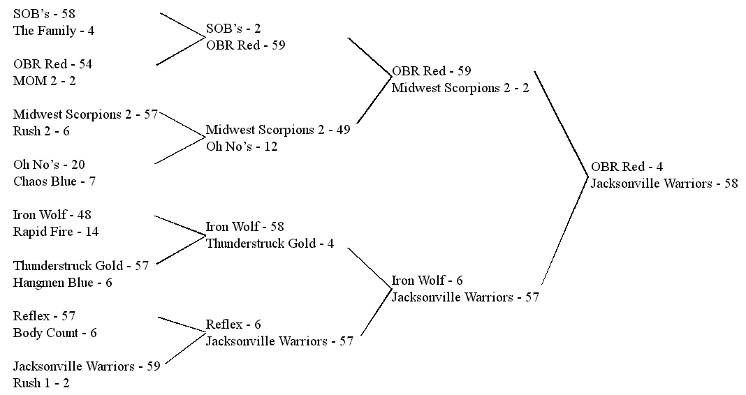 | Jacksonville Warriors | 58 | 58 |