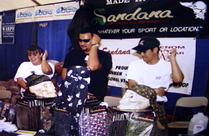 Vendors gathered with Rob Kerr (center) at the Sandana booth to dance the Macarena